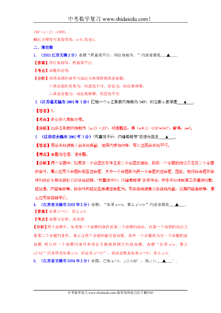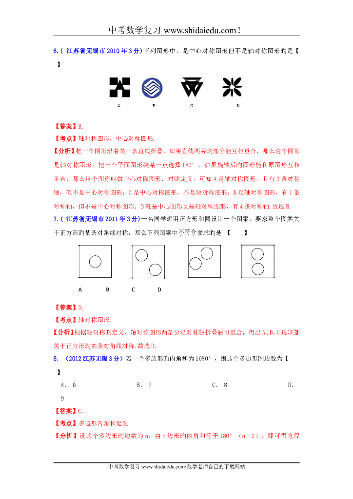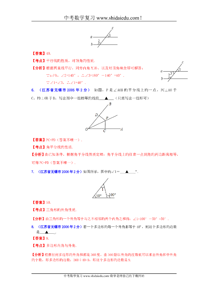 江苏无锡-中考数学试题分类解析专题8:平面几何基础和向量.doc