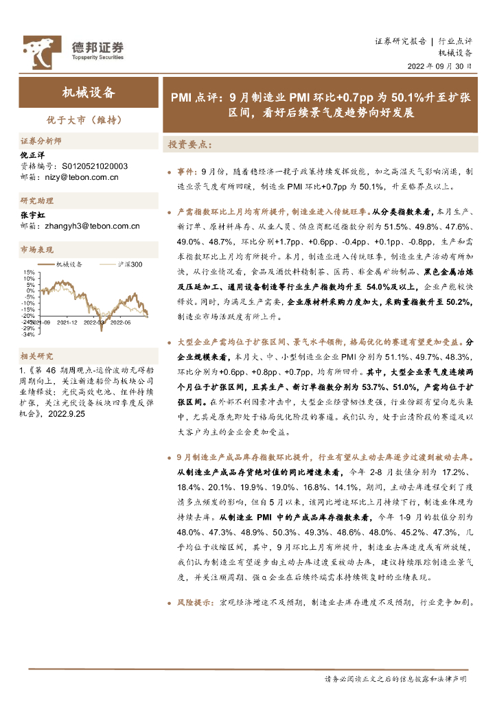 德邦证券:机械设备PMI点评:9月制造业PMI环比+0.7pp为50.1%升至扩张区间,看好后续景气度趋势向好发展.pdf