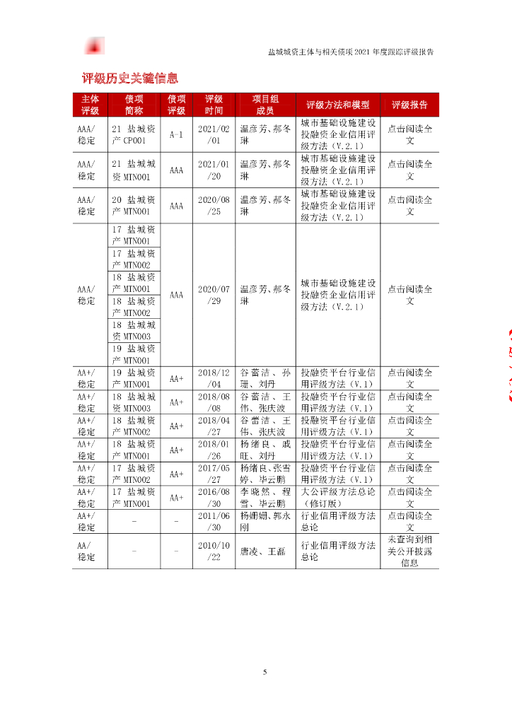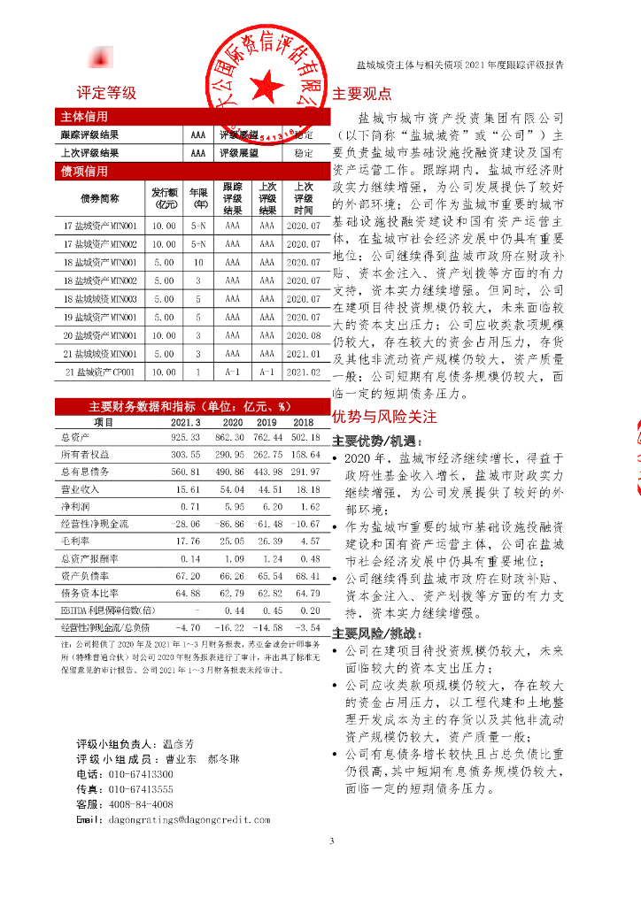 大公:盐城市城市资产投资集团有限公司主体信用评级报告及跟踪评级安排.pdf