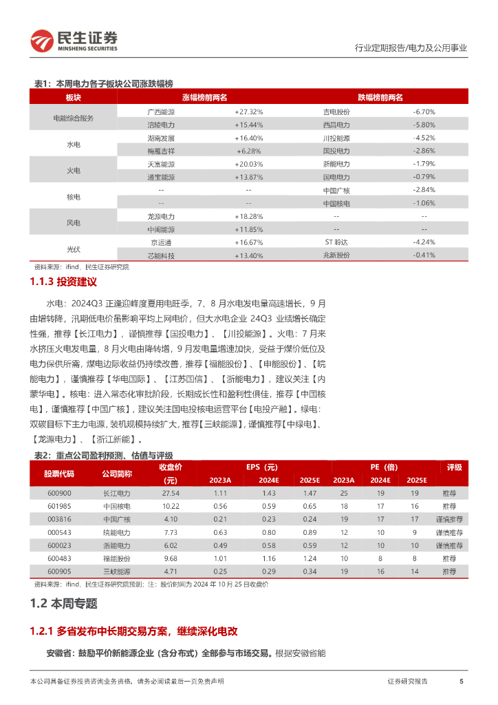 民生证券:电力及公用事业行业周报(24WK43):9月用电量增速8.5%,各省发布中长期交易细则.pdf