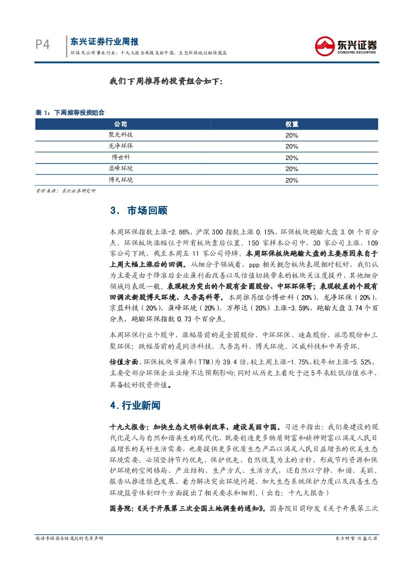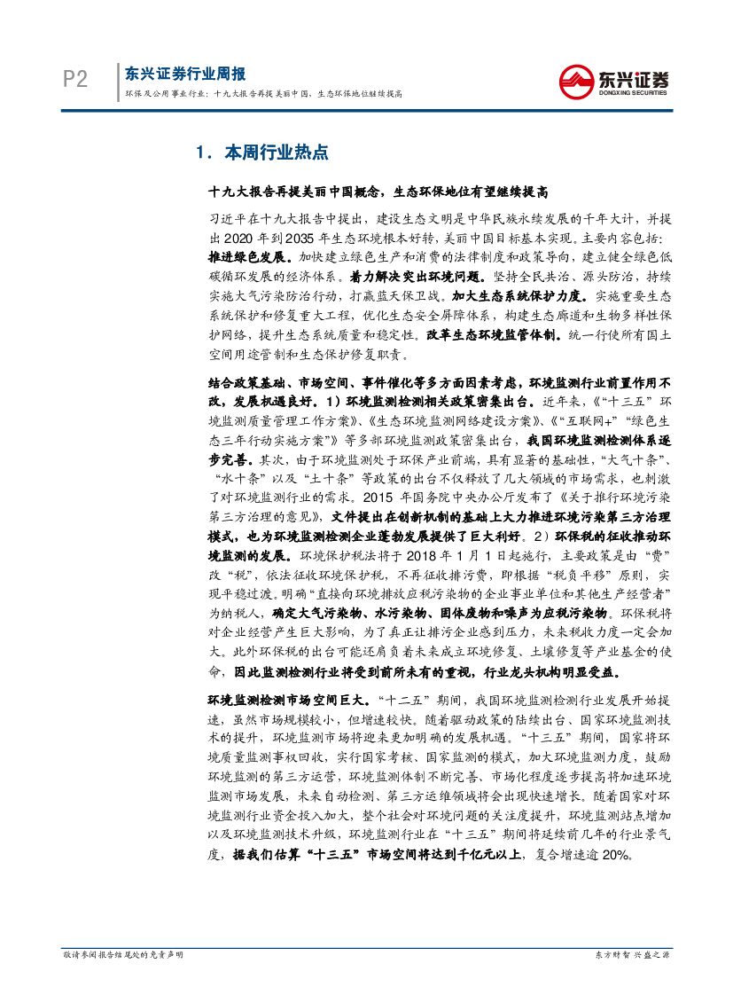 东兴证券:环保及公用事业行业周报:十九大报告再提美丽中国,生态环保地位继续提高.pdf