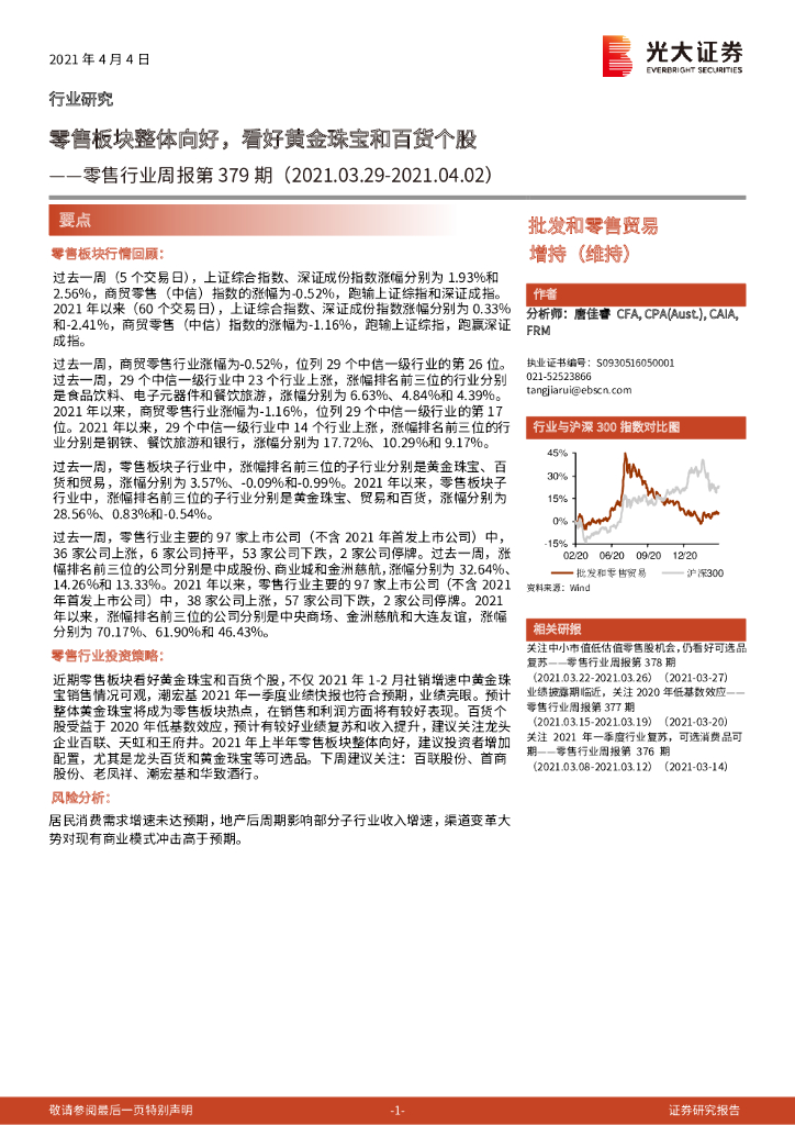 光大证券:零售行业周报第379期:零售板块整体向好,看好黄金珠宝和百货个股.pdf