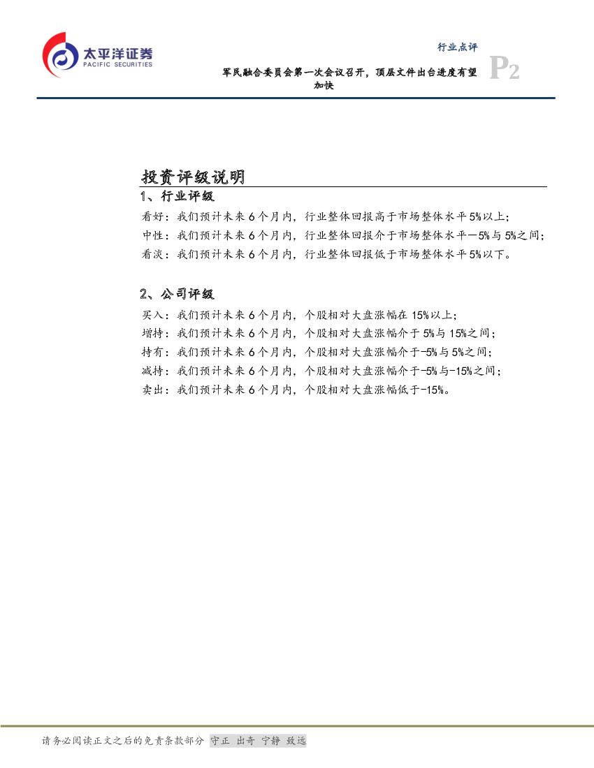太平洋证券:国防军工行业点评:军民融合委员会第一次会议召开,顶层文件出台进度有望加快.pdf