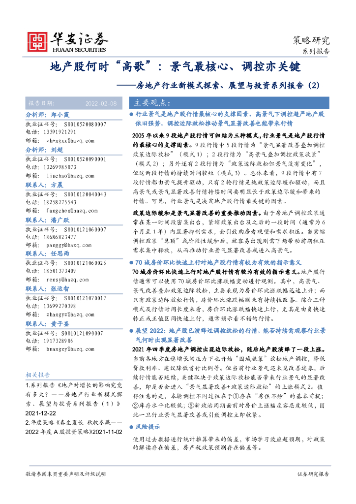 华安证券:房地产行业新模式探索、展望与投资系列报告(2):地产股何时“高歌”:景气最核心、调控亦关键.pdf