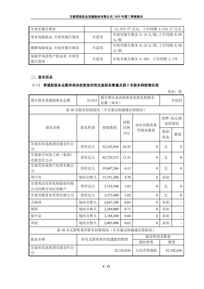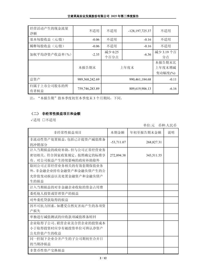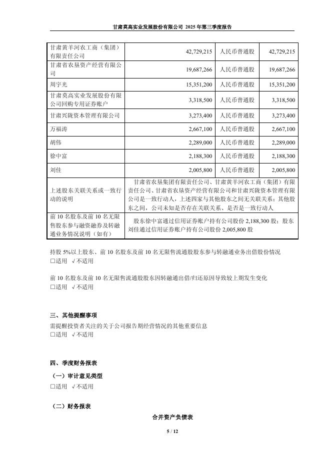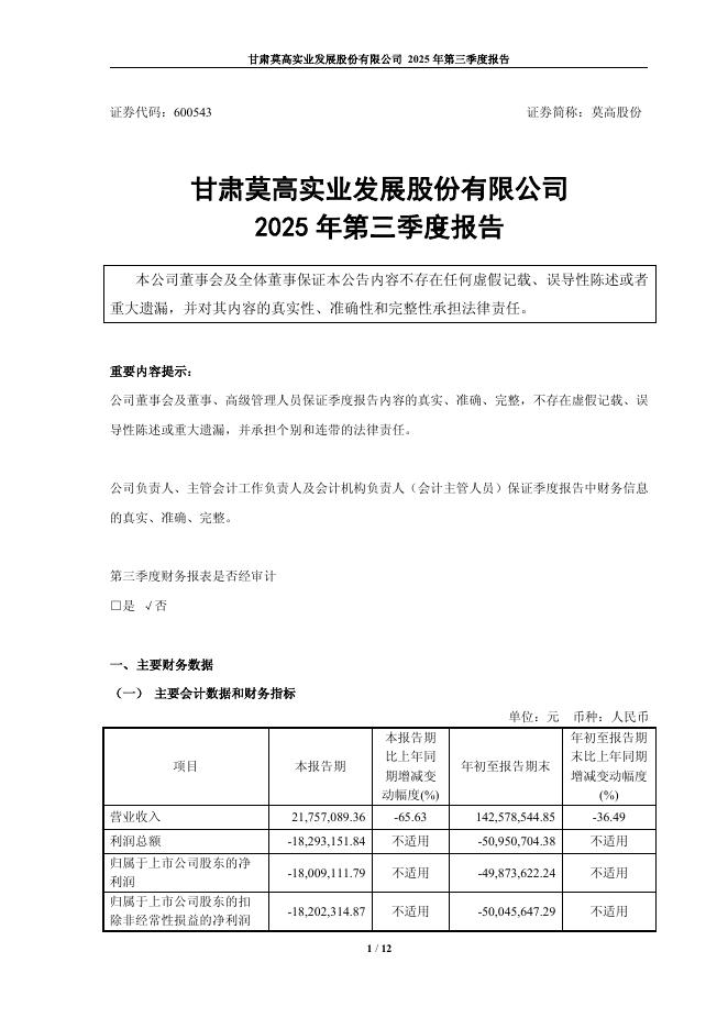 600543-莫高股份:莫高股份2025年第三季度报告.pdf