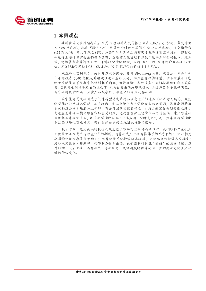首创证券:电力设备行业简评报告:硅料价格继续探底,关注电力设备出海.pdf