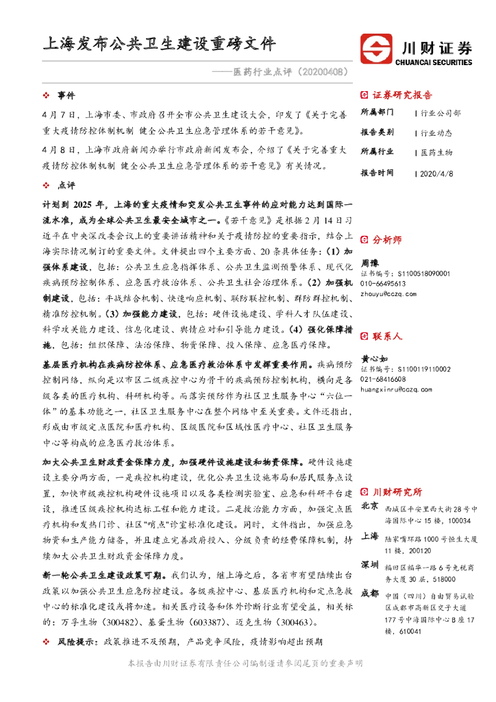 川财证券:医药行业点评:上海发布公共卫生建设重磅文件.pdf