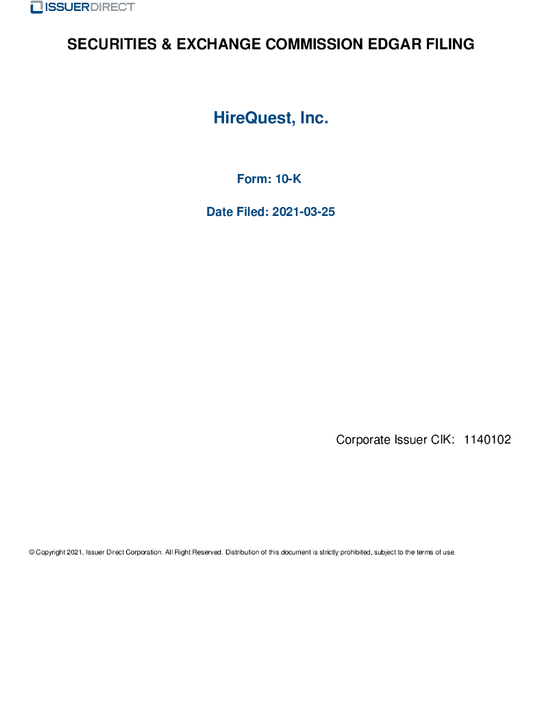 HireQuest, Inc.(HQI)2020财年年度报告(英文版).pdf