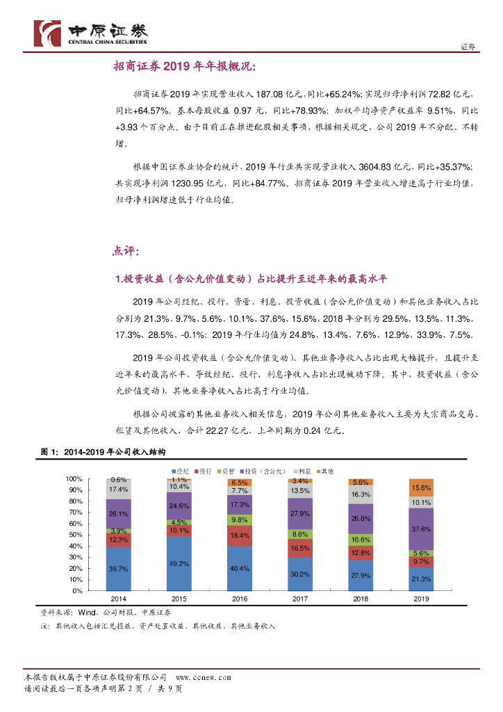 中原证券:招商证券(600999)-2019年年报点评:方向性投资等多业务驱动业绩明显改善.pdf