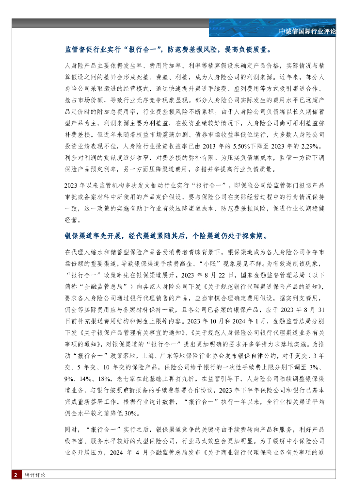 中诚信国际:保险行业研究:“报行合一”一周年,几家欢喜几家忧?.pdf