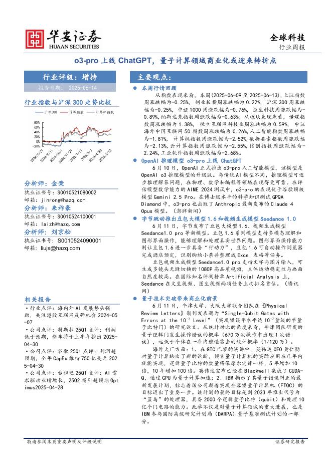 华安证券:全球科技行业周报:o3-pro上线ChatGPT,量子计算领域商业化或迎来转折点.pdf