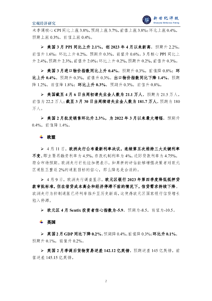 新世纪评级:世行下调拉美地区经济增速 中国外贸一季度开局有力——全球宏观经济周报(2024/4/6-4/12).pdf