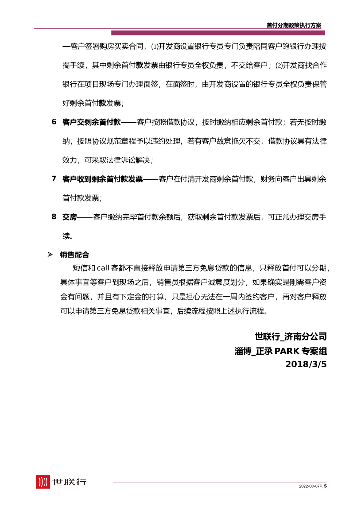 #首付文案# 淄博_正承·PARK_首付分期政策执行方案.doc
