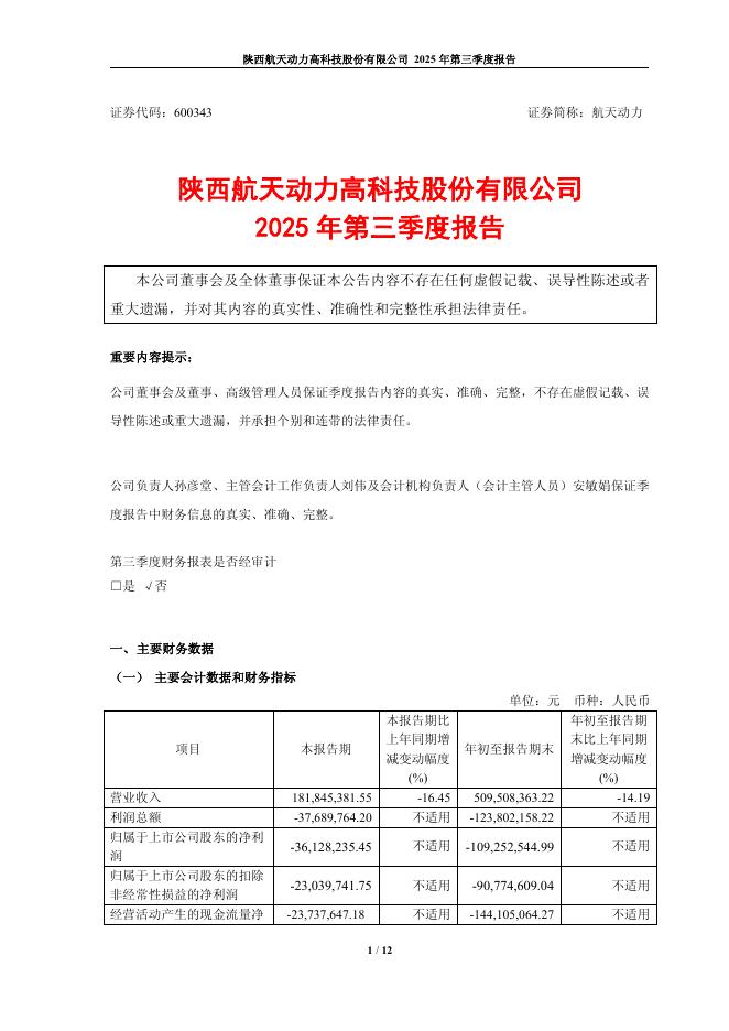 600343-航天动力:航天动力2025年第三季度报告.pdf