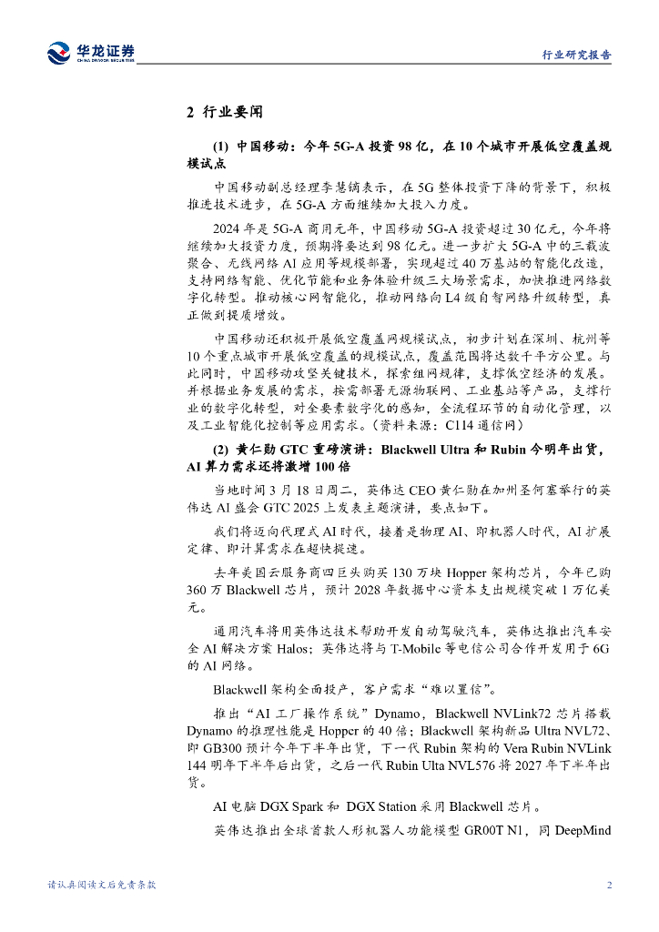 华龙证券:通信行业周报:AI及卫星互联网快速发展,关注相关产业链投资机会.pdf