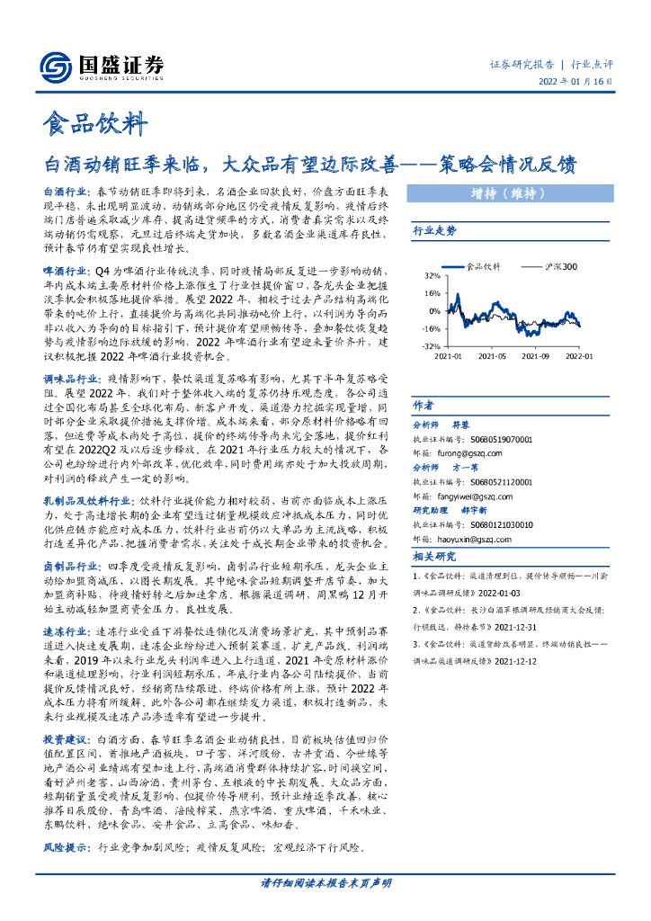 国盛证券:食品饮料策略会情况反馈:白酒动销旺季来临,大众品有望边际改善.pdf
