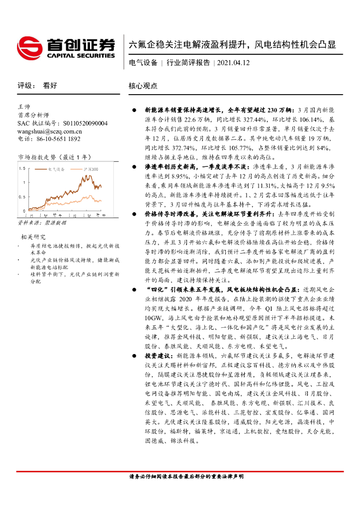 首创证券:电气设备行业简评报告:六氟企稳关注电解液盈利提升,风电结构性机会凸显.pdf