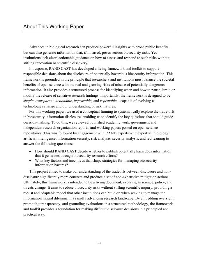 Rand兰德:2026年生物安全信息披露的生存框架和指南报告(英文版).pdf