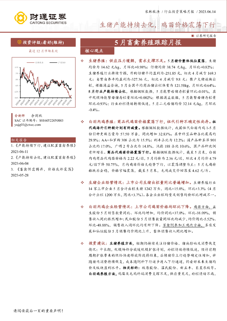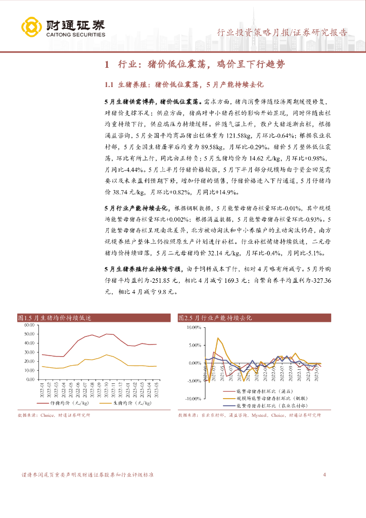 财通证券:5月畜禽养殖跟踪月报:生猪产能持续去化,鸡苗价格震荡下行.pdf