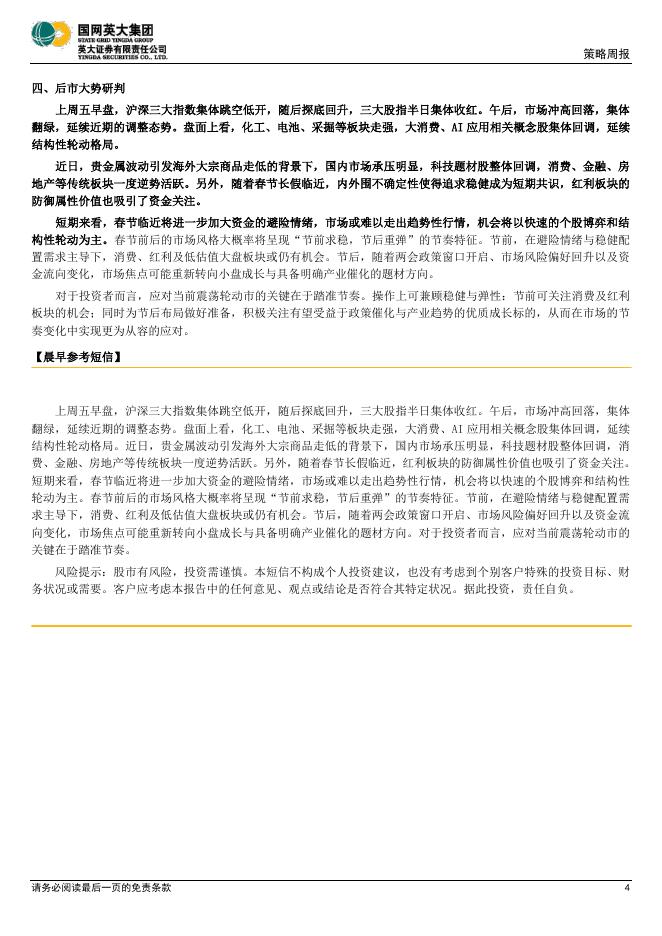 英大证券:每周投资早参:节前市场情绪偏谨慎,个股博弈和结构性轮动为主,节后关注优质成长标的-260209.pdf