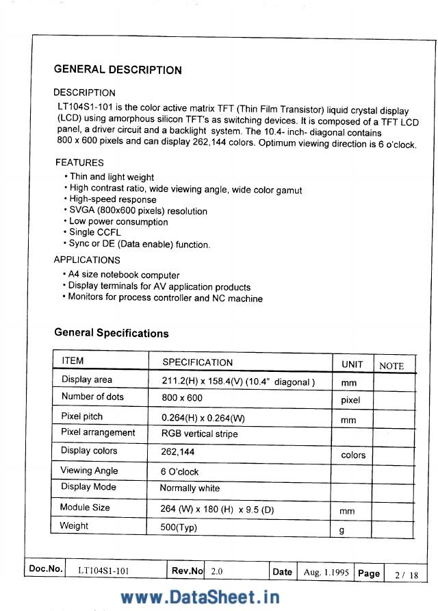 SAMSUNG LT104S1-101 数据手册.pdf