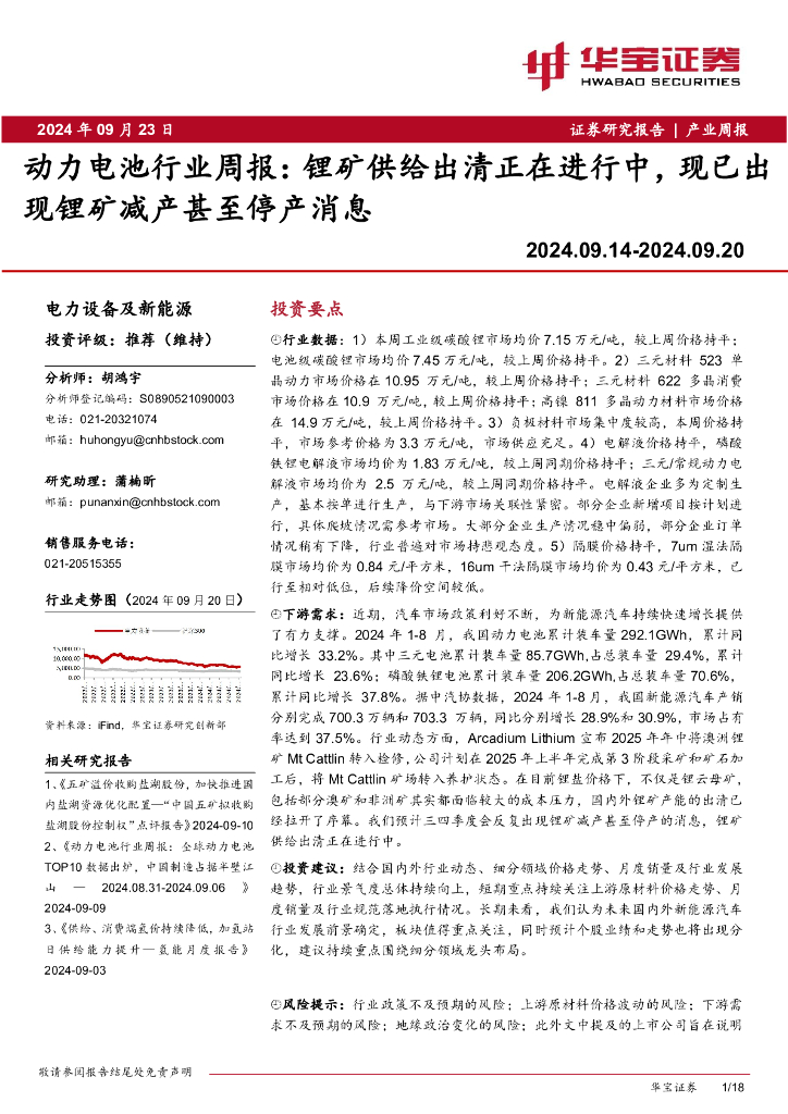 华宝证券:动力电池行业周报:锂矿供给出清正在进行中,现已出现锂矿减产甚至停产消息.pdf