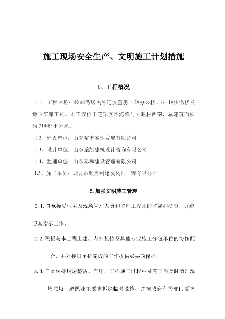 安置工程施工现场安全生产文明施工计划措施.doc