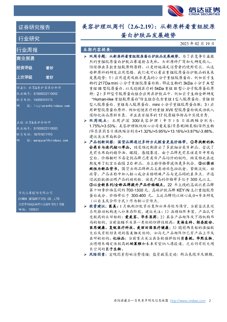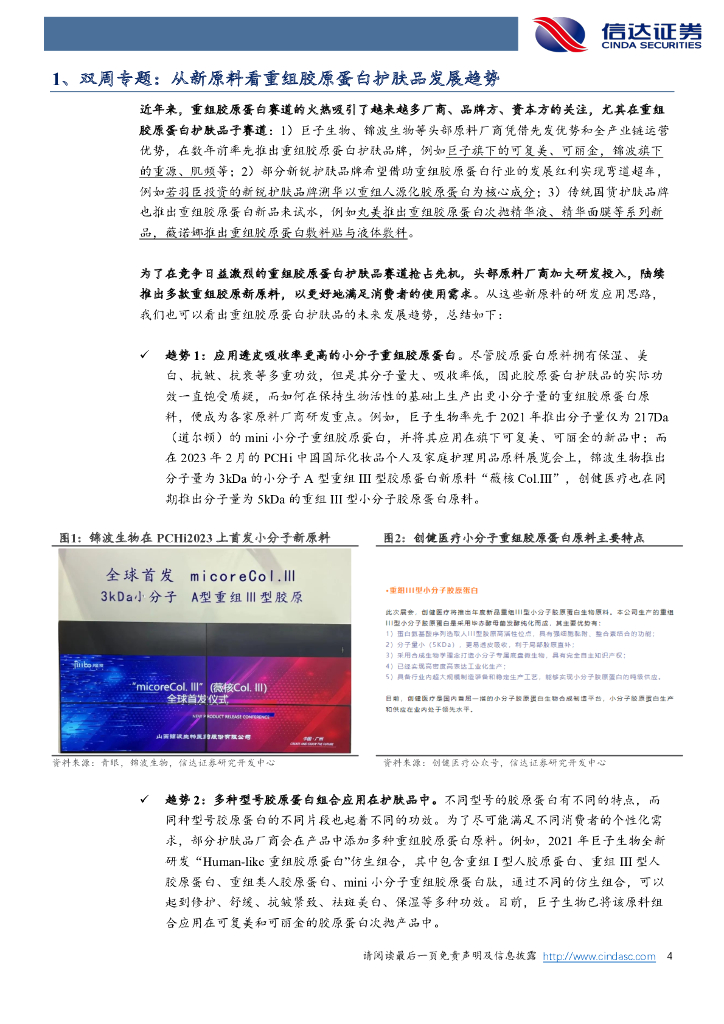 信达证券:美容护理双周刊:从新原料看重组胶原蛋白护肤品发展趋势.pdf
