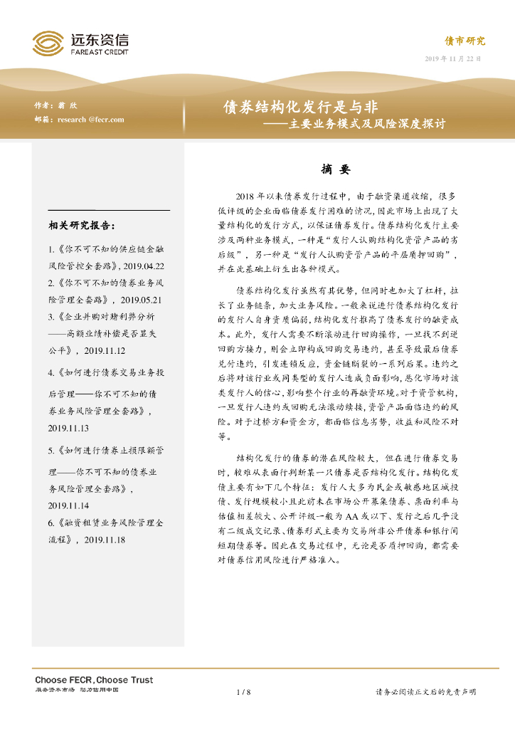 远东资信:债券结构化发行是与非——主要业务模式及风险深度探讨.pdf