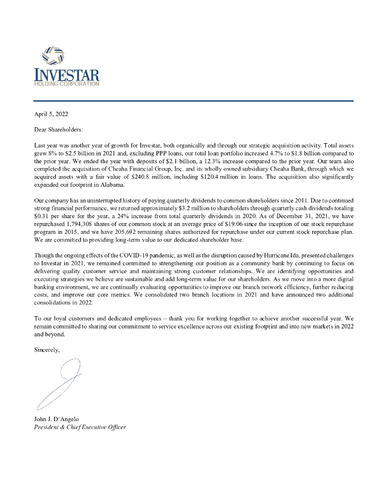 Investar Holding Corp(ISTR)2021财年年度报告(英文版).pdf
