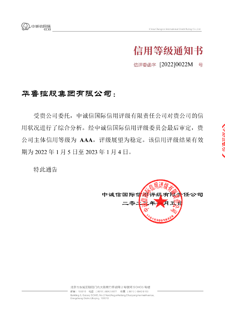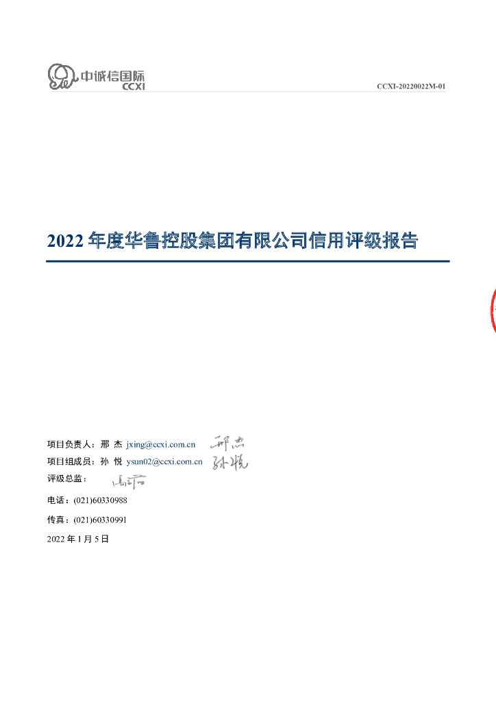 中诚信:华鲁控股集团有限公司主体信用评级报告及跟踪评级安排.pdf