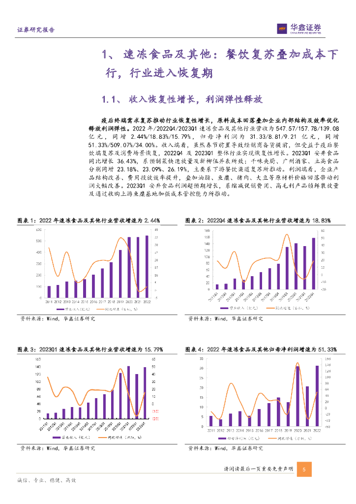 华鑫证券:速冻食品板块2022年及2023Q1总结:餐饮复苏叠加成本下行,行业恢复有望加快.pdf