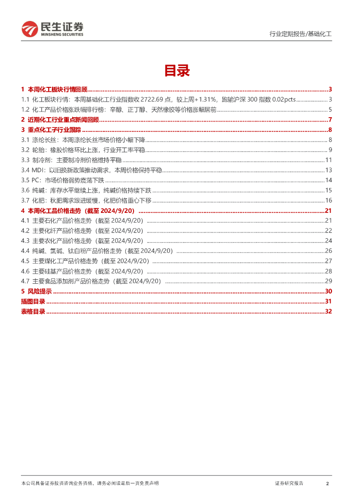 民生证券:化工行业周报(-):辛醇价格大幅上扬,纯碱需求承压价格下行.pdf