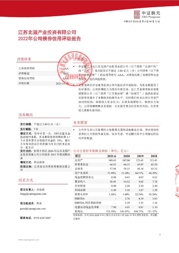 鹏元:2022年江苏北固产业投资有限公司公司债券信用评级报告.pdf