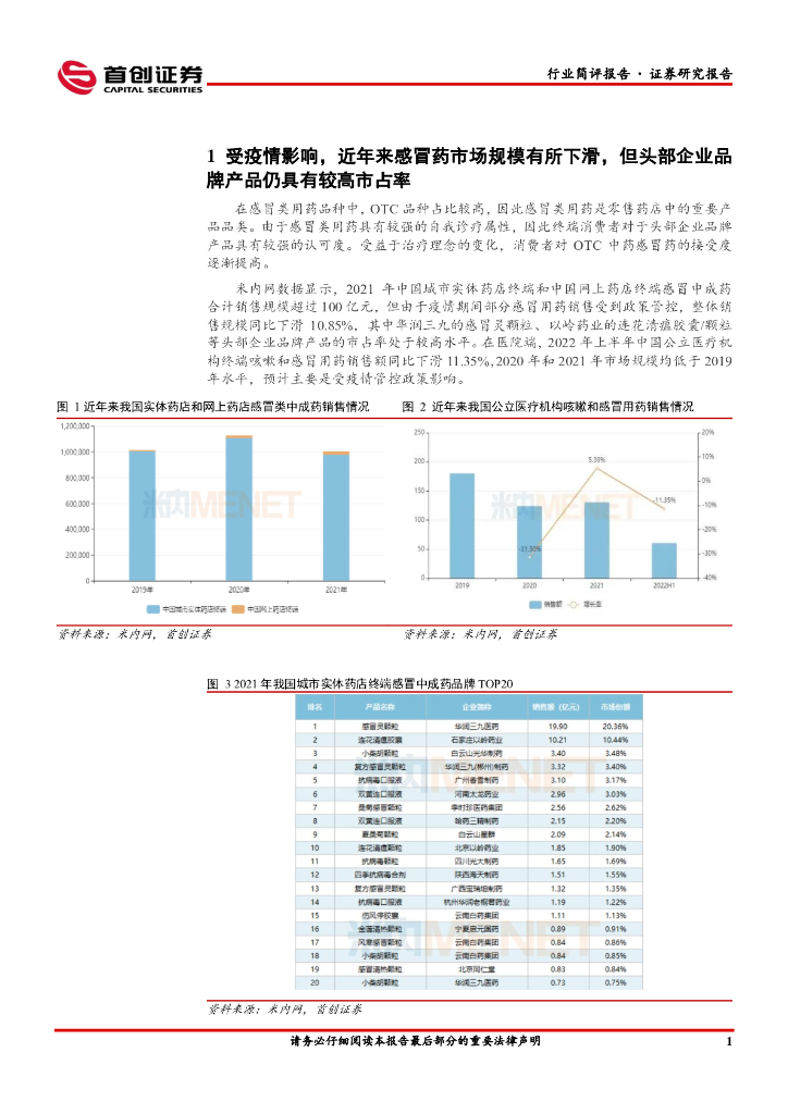 首创证券:医药生物行业简评报告:感冒药需求进入快速提升阶段,关注受益标的.pdf