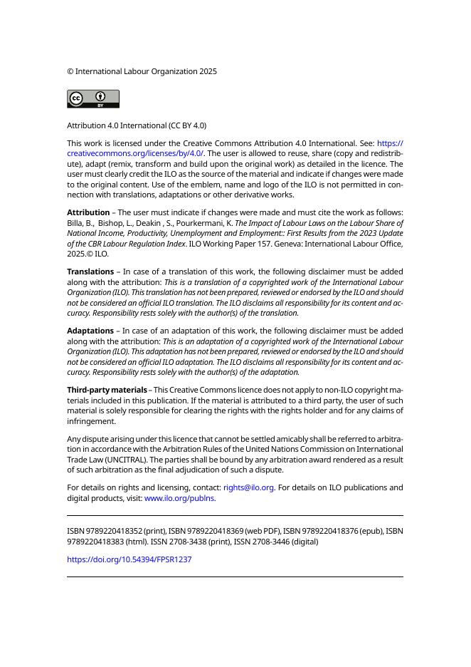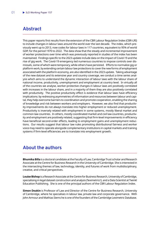 国际劳工组织(ILO):劳动法律对国民收入中劳动份额、生产力、失业和就业的影响:2023年更新版的CBR劳动规制指数的初步结果(英文版).pdf