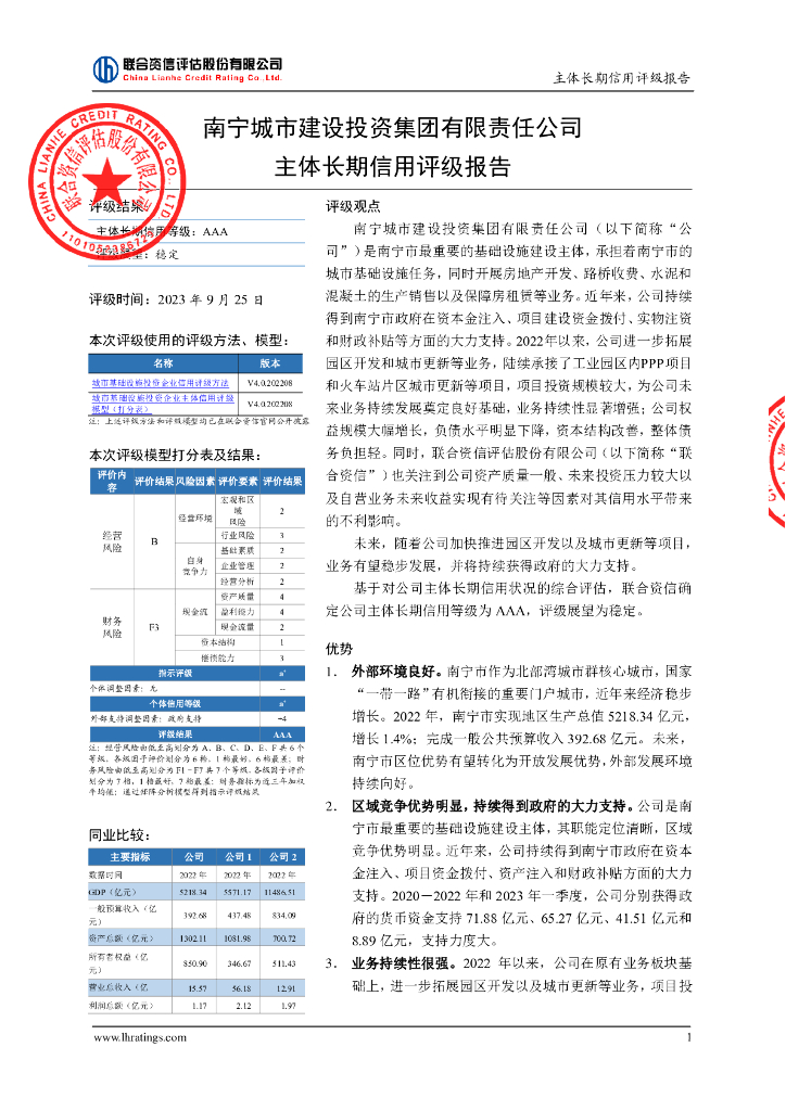 联合资信:南宁城市建设投资集团有限责任公司主体长期信用评级报告.pdf