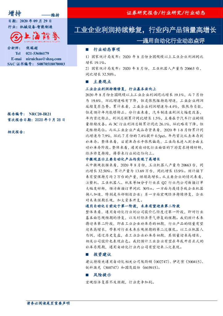上海证券:通用自动化行业动态点评:工业企业利润持续修复,行业内产品销量高增长.pdf