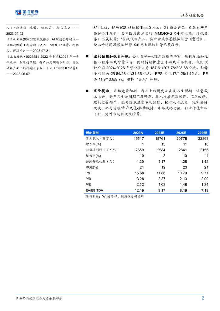 国海证券:三七互娱(002555)-公司动态研究:持续季度分红回馈股东,小游戏推动业绩增长,关注新品周期2024H2.pdf
