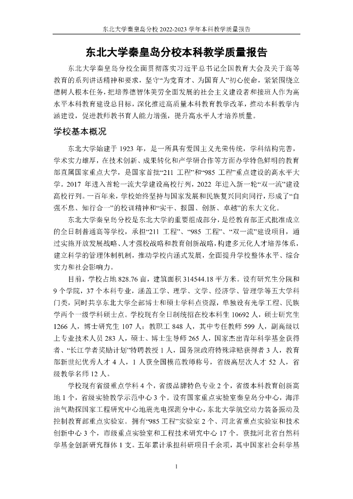 东北大学秦皇岛分校2022-2023学年本科教学质量报告.pdf