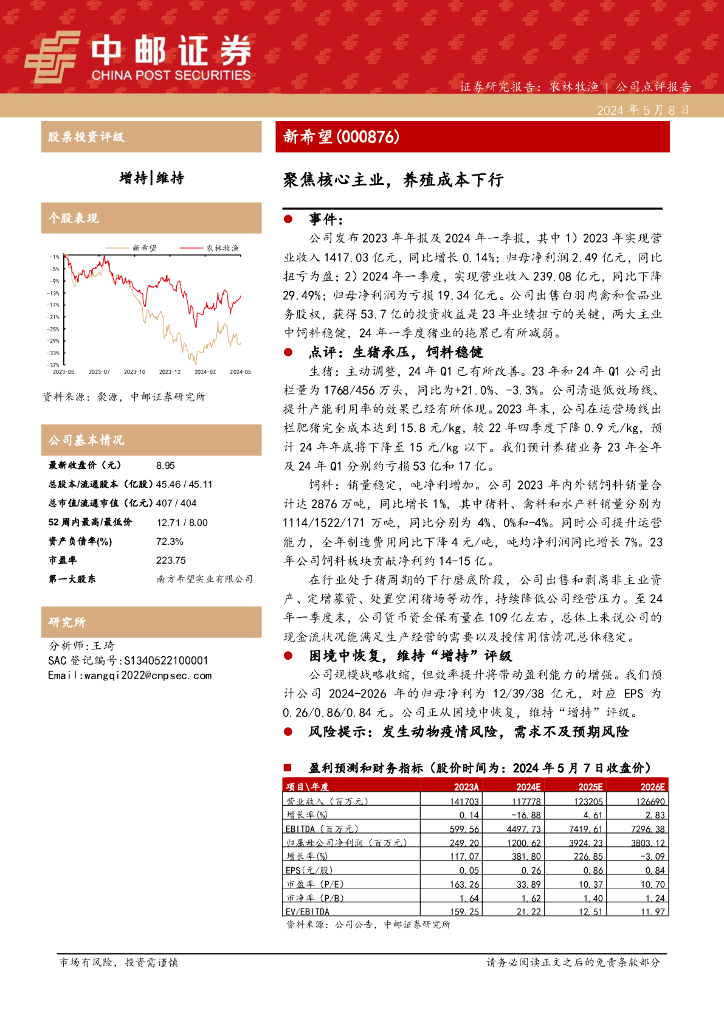 中邮证券:新希望(000876)-聚焦核心主业,养殖成本下行.pdf