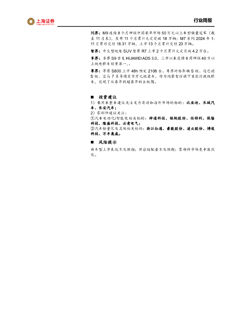 上海证券:汽车行业周报:车市12月翘尾行情或较为突出,广汽华为合作将推出全新高端智能新能源品牌.pdf