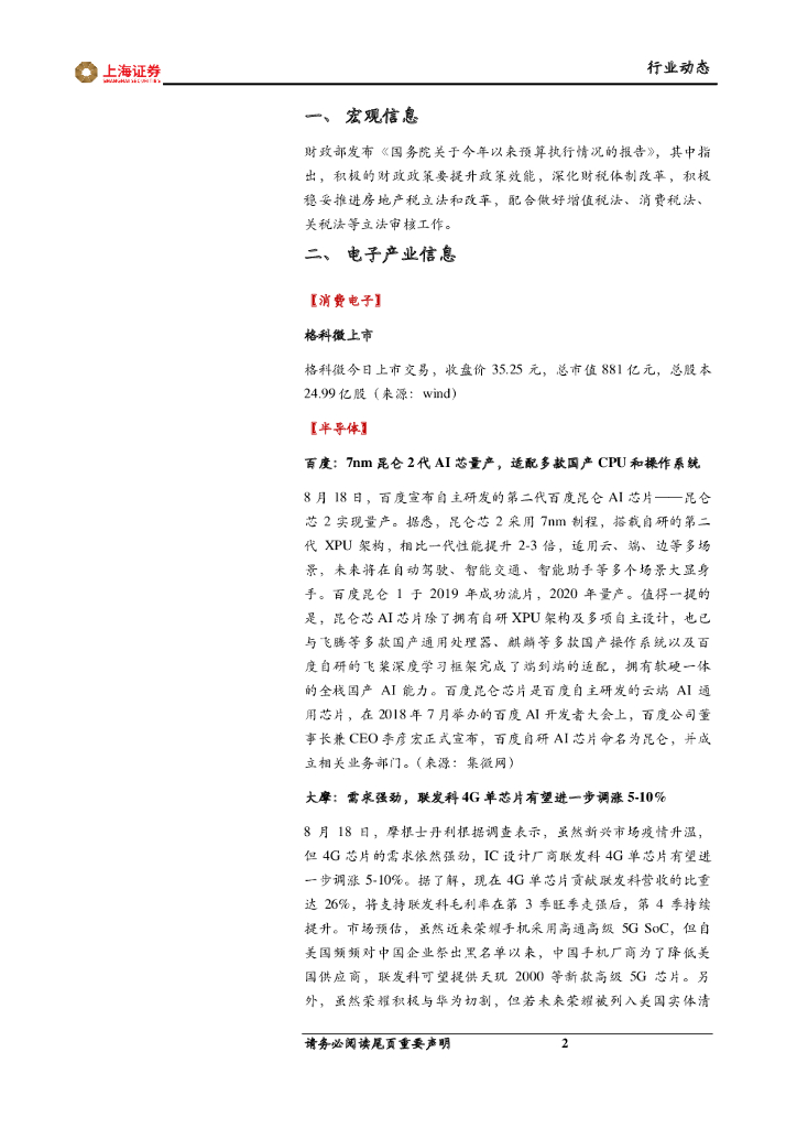 上海证券:上证电子行业日报:百度发布昆仑AI芯片.pdf