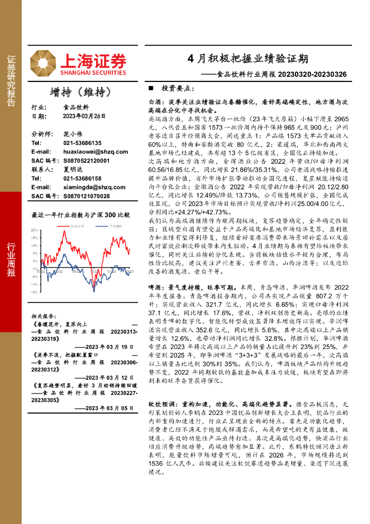 上海证券:食品饮料行业周报:4月积极把握业绩验证期.pdf