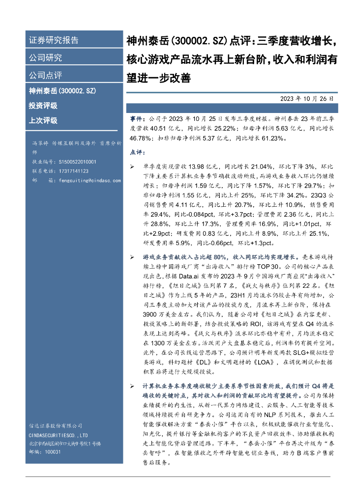 信达证券:神州泰岳(300002)-点评:三季度营收增长,核心游戏产品流水再上新台阶,收入和利润有望进一步改善.pdf