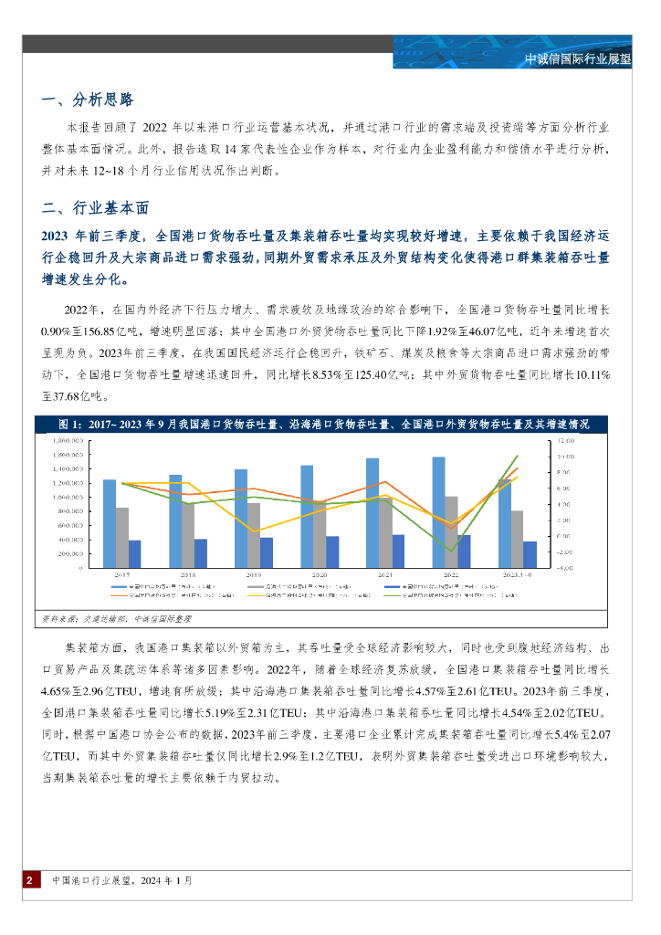 中诚信国际:中国港口行业:中国港口行业展望,2024年1月.pdf