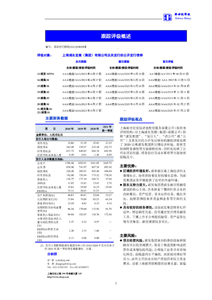 新世纪:上海浦东发展(集团)有限公司主体评级报告.pdf