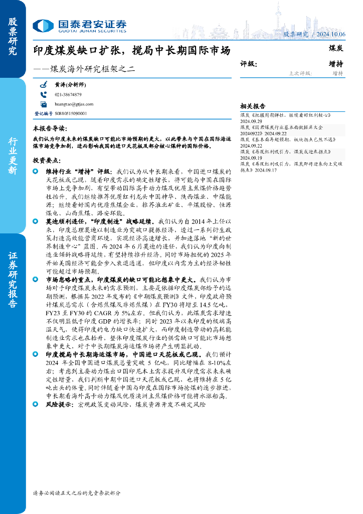 国泰君安:煤炭海外研究框架之二:印度煤炭缺口扩张,搅局中长期国际市场.pdf