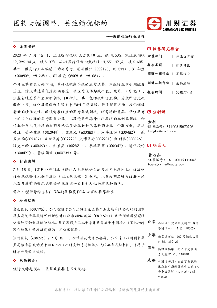 川财证券:医药生物行业日报:医药大幅调整,关注绩优标的.pdf