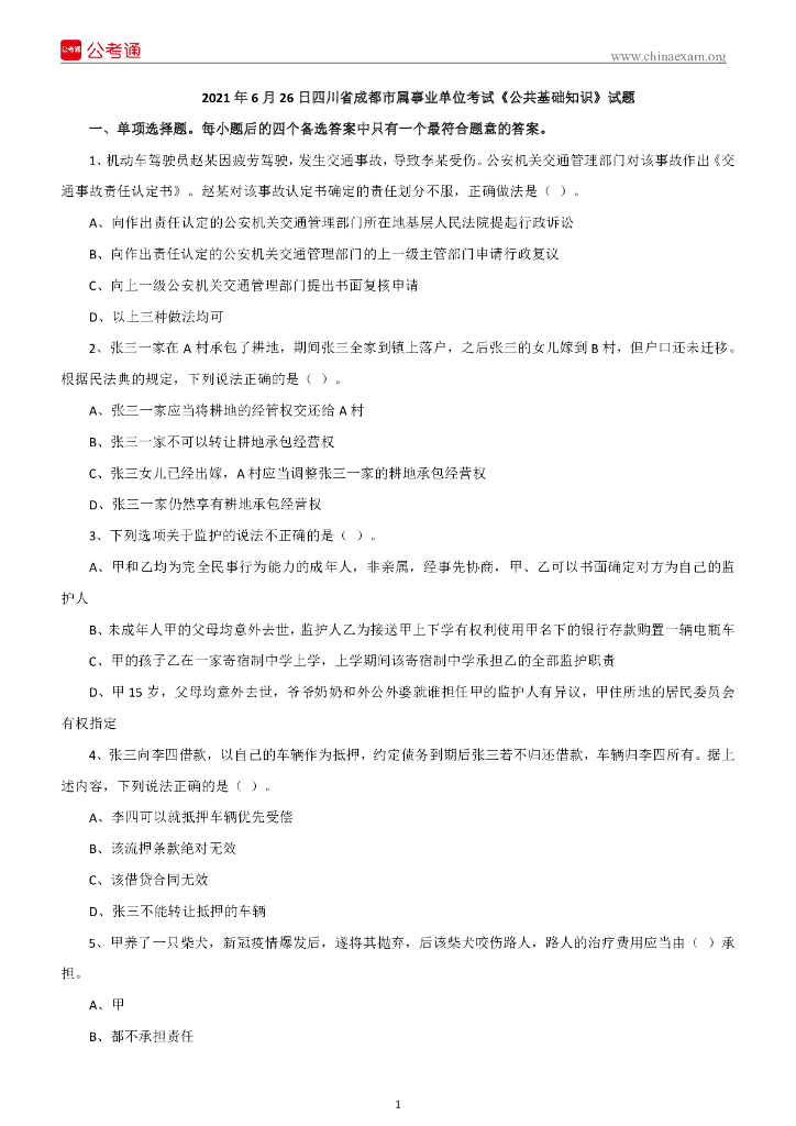 2021年6月26日四川省成都市属事业单位考试《公共基础知识》试题.pdf